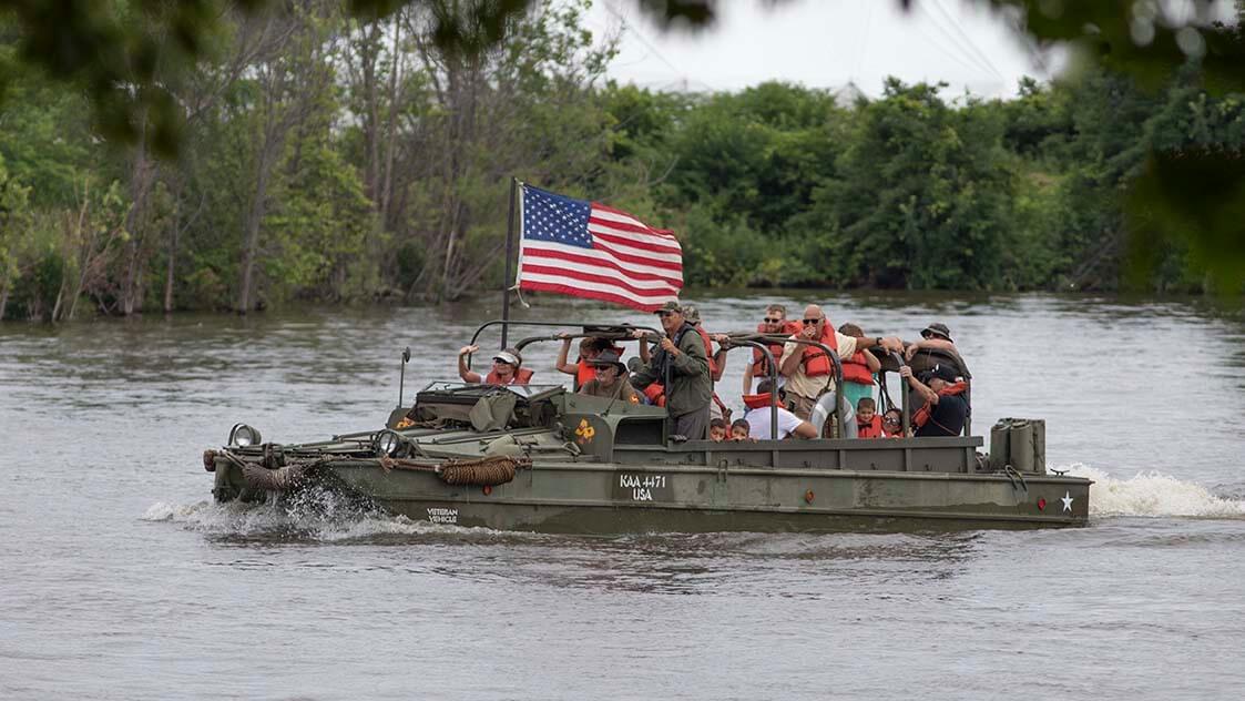 - Free Boat Rides on three restored World War II and Korean landing crafts. An LTV "Water Buffalo," a dual-track amphibious vehicle; a 2-1/2 ton amphibious-wheeled DUKW or "Duck" truck; and a Higgins boat, most often associated with the D-Day landings at Normandy in World War II.